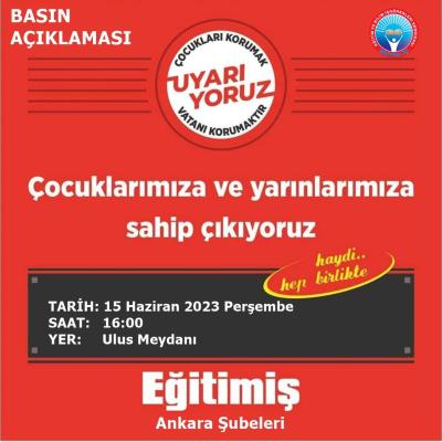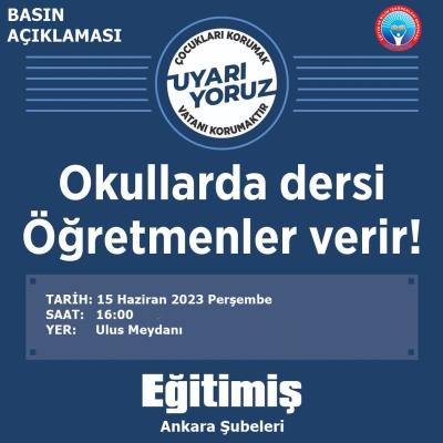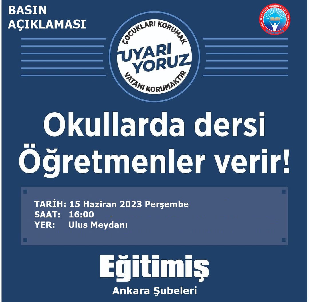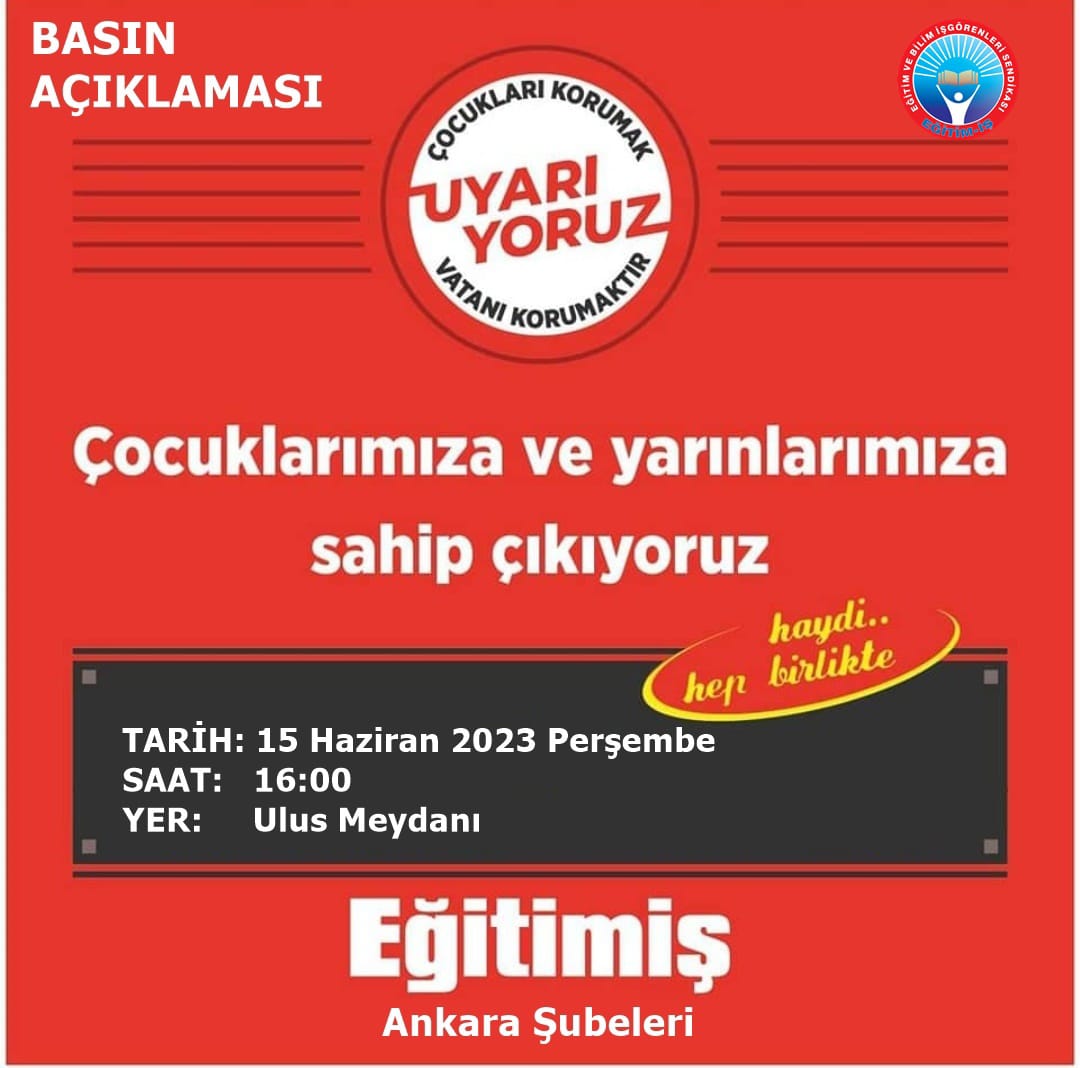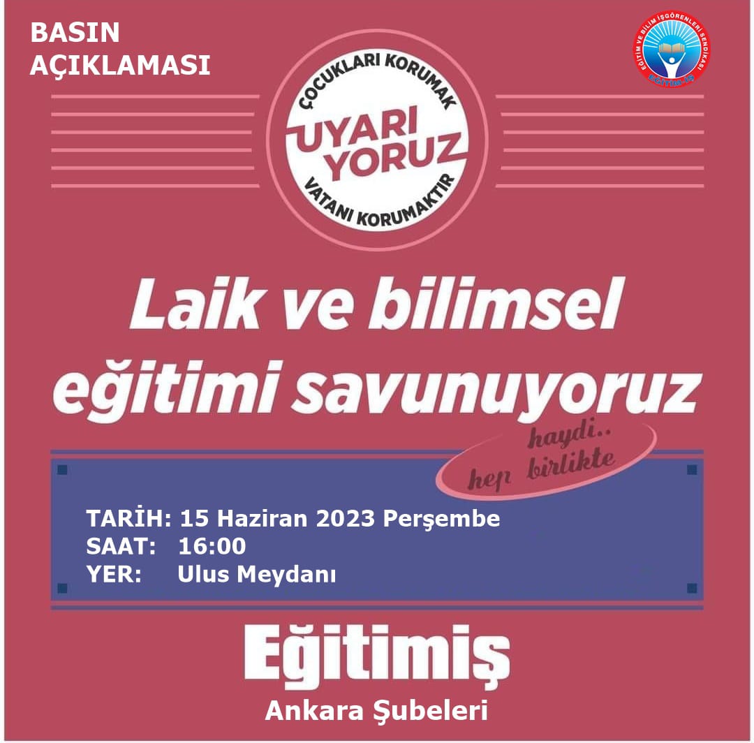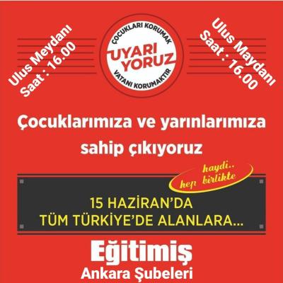 Laik-bilimsel-parasız eğitim mücadelesine inanan tüm Ankaralıları 15 Haziran Saat 16.00'te Ulus Meydanı'na bekliyoruz.