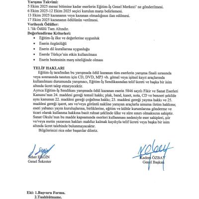 Hazırlayacağınız çalışmalarınızı 5 Ekim 2025 tarihine kadar sendikamıza iletmeniz gerekmektedir.